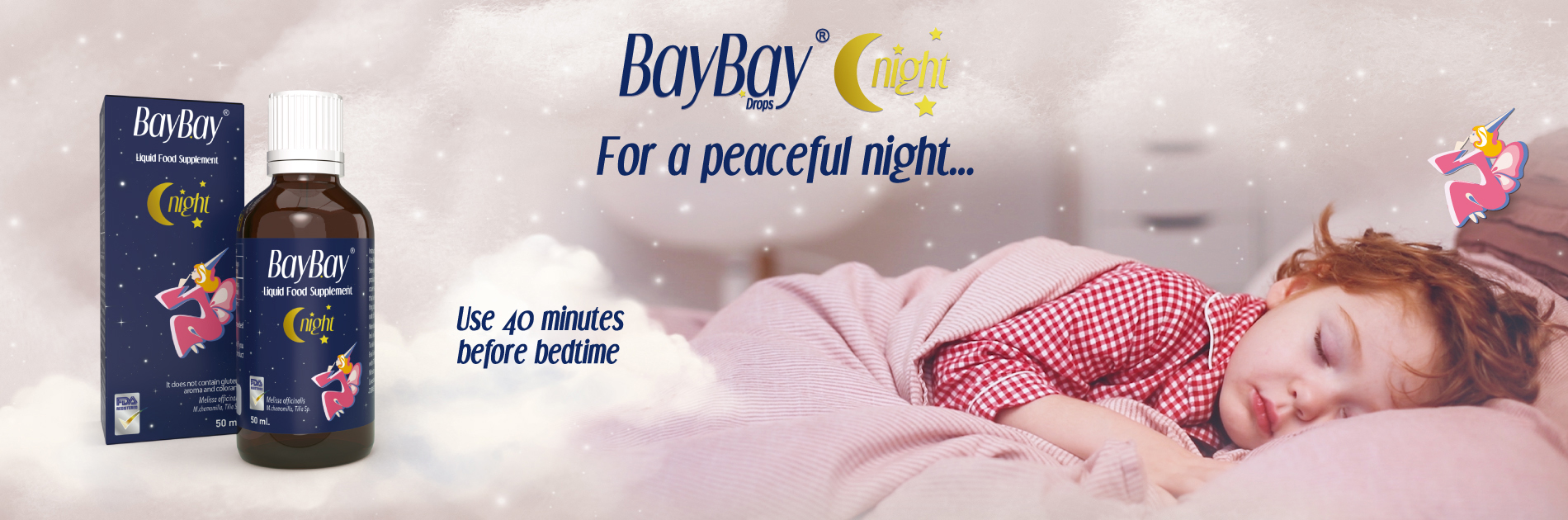 مکمل تنظیم خواب شبانه نوزاد و کودک بای بای نایت bay bay night حاوی عصاره طبیعی گیاهان بادرنجویه, بلسان, لیندن و بابونه می باشد. گیاهان موجود در این قطره گیاهی با اثر بخشی بالا وظیفه تنظیم ریتم خواب کودک و نوزاد را دارد. به نقل از محققین قطره bay bay night گزارشی در مورد مضرات یا آسیبی از مصرف این قطره دیده یا شنیده نشده است.